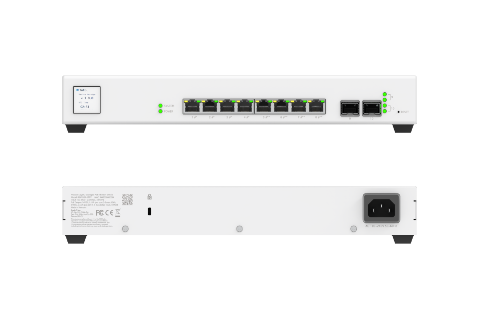 As WiFi 7 becomes the new standard, enterprise networks face unprecedented demands for higher bandwidth and increased power delivery. This 10-port managed switch is precision-engineered for high-performance Access Points (APs) and data-intensive environments. Featuring eight 2.5G Multi-Gigabit ports and two 10G SFP+ fiber uplinks, it eliminates transmission bottlenecks to ensure WiFi 7 devices reach their full potential.